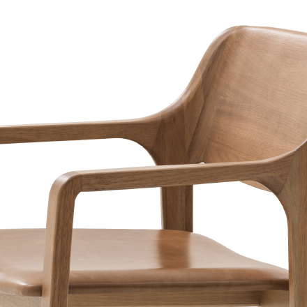 The main feature of the Clave line is it organic outlining. The chair, as well as the table feet, presents fluid contours that are obtained through the use of 5-axis CNC (high technology Computerized Numeric Control equipment) modeling of solid wood, which allows sculpting the raw block and reaching volumes extremely lightweight.