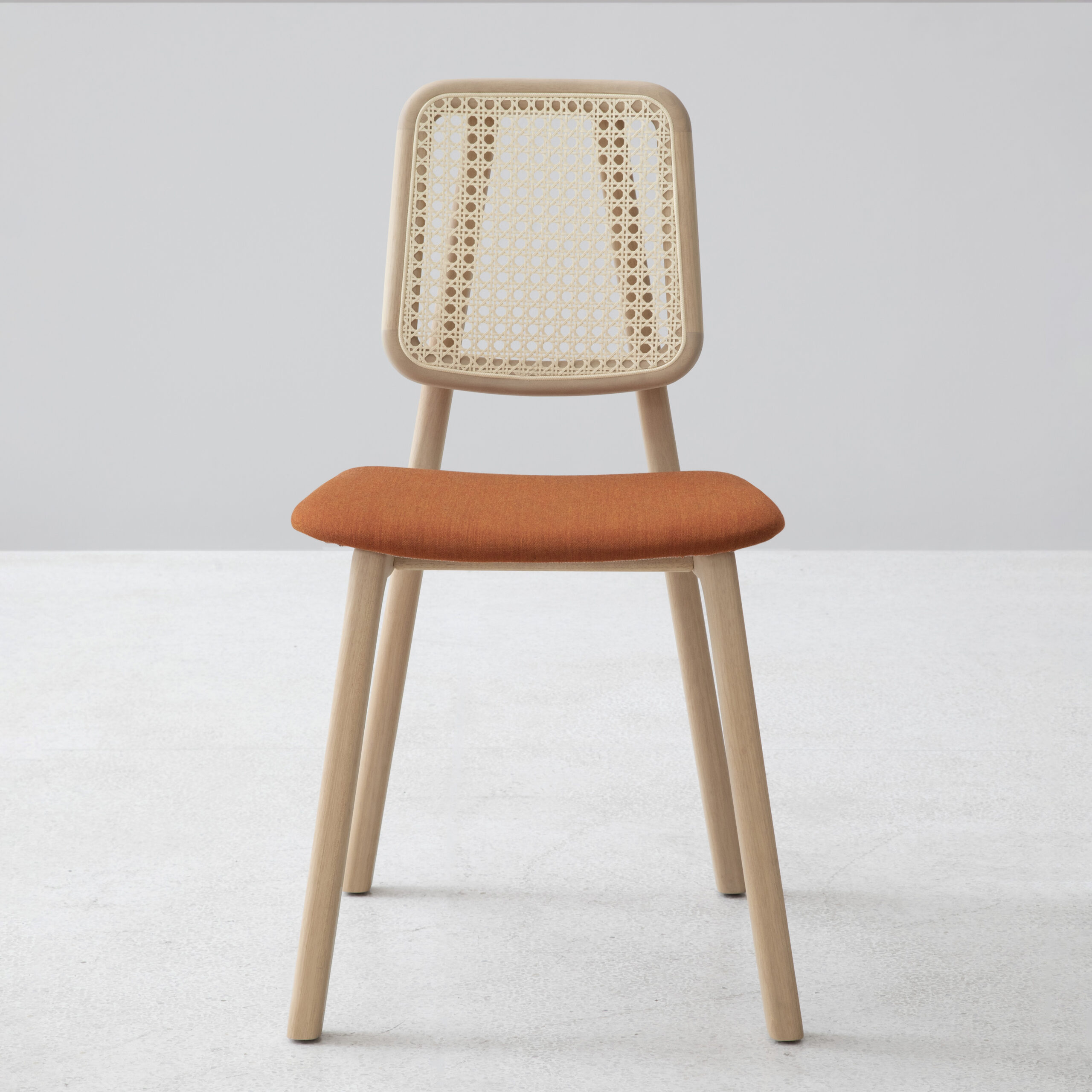 From every angle one can see the geometry and precision of this chair. The front view reveals the trapeze. Its vertical lines lead the eye to a central point somewhere above the chair and out of sight. The seat, which has a similar shape, also takes the eye to the vanishing point.
