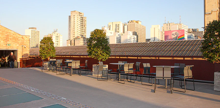 O projeto original de Paulo Mendes da Rocha e Pedro Mendes da Rocha foi tomado como ponto de partida para a reconstrução do edifício após o incêndio que sofreu em 2015. Algumas áreas, que já haviam sido concebidas no original, foram agora implementadas, como o terraço na cobertura que leva o nome de Paulo Mendes da Rocha. Nele temos o mobiliário desenhado pelo arquiteto vencedor do Prêmio Pritzker em colaboração com o MMBB Arquitetos para ,Ovo Public – cadeiras e poltronas “22”, assim como as mesas Obi, dos designers da ,Ovo Luciana Martins e Gerson de Oliveira.
