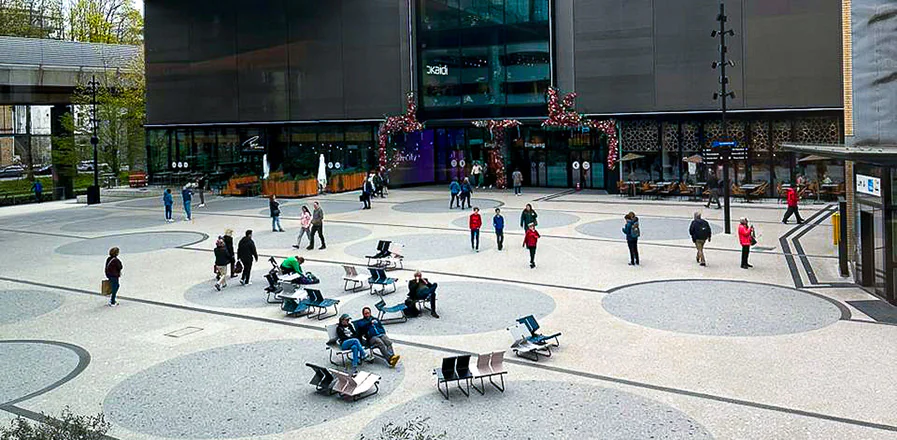 Localizado na cidade suiça de Zurique, o Sihlcity é um complexo comercial, cultural e de lazer projetado pelo arquiteto Theo Hotz a partir de que era originalmente uma antiga fábrica de papel. Inaugurado em 2007, a área externa recebeu recentemente um conjunto de poltronas 22 (Paulo Mendes da Rocha + MMBB Arquitetos para ,Ovo Public), em revitalização comandada pelo escritório de arquitetura Stücheli Pestalozzi Schiratzki.