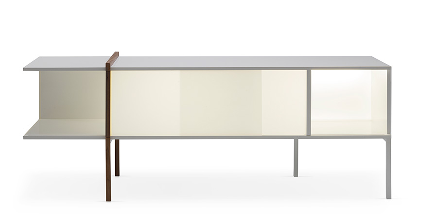 + especificações solicite o seu orçamentoAra é um aparador feito de madeira laqueada branca, planos de acrílico, uma linha de madeira (nogueira) e luz. Seu jogo de linhas horizontais e verticais remete aos volumes da arquitetura tradicional japonesa, aqui ressignificados pela desconstrução assimétrica dos planos e dos pés. A luz interna, embutida no plano do fundo do móvel, lhe confere leveza transformando-o em uma espécie de “móvel-objeto”.