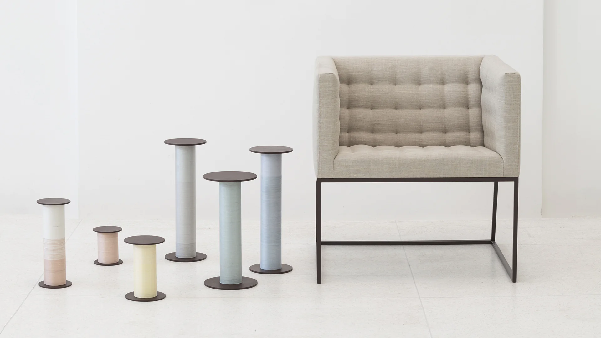 Assim como a cadeira 3D, esta peça tem na característica gráfica um de seus pontos mais marcantes. Base e concha têm desenhos análogos, sendo um vazado, formado por linhas, e o outro um volume cheio, estofado.