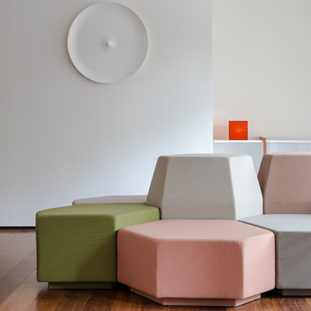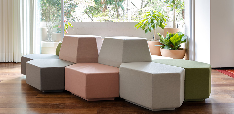 Normalmente estruturas modulares se baseiam em elementos simétricos, como as colmeias. Aqui fizemos o exercício de construir a modularidade utilizando blocos irregulares. Os módulos Campo são hoje um dos produtos mais vendidos pela Ovo, sendo utilizados em áreas residenciais, comerciais ou públicas, como a Faculdade Belas Artes e a Pinacoteca do Estado de São Paulo.