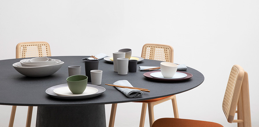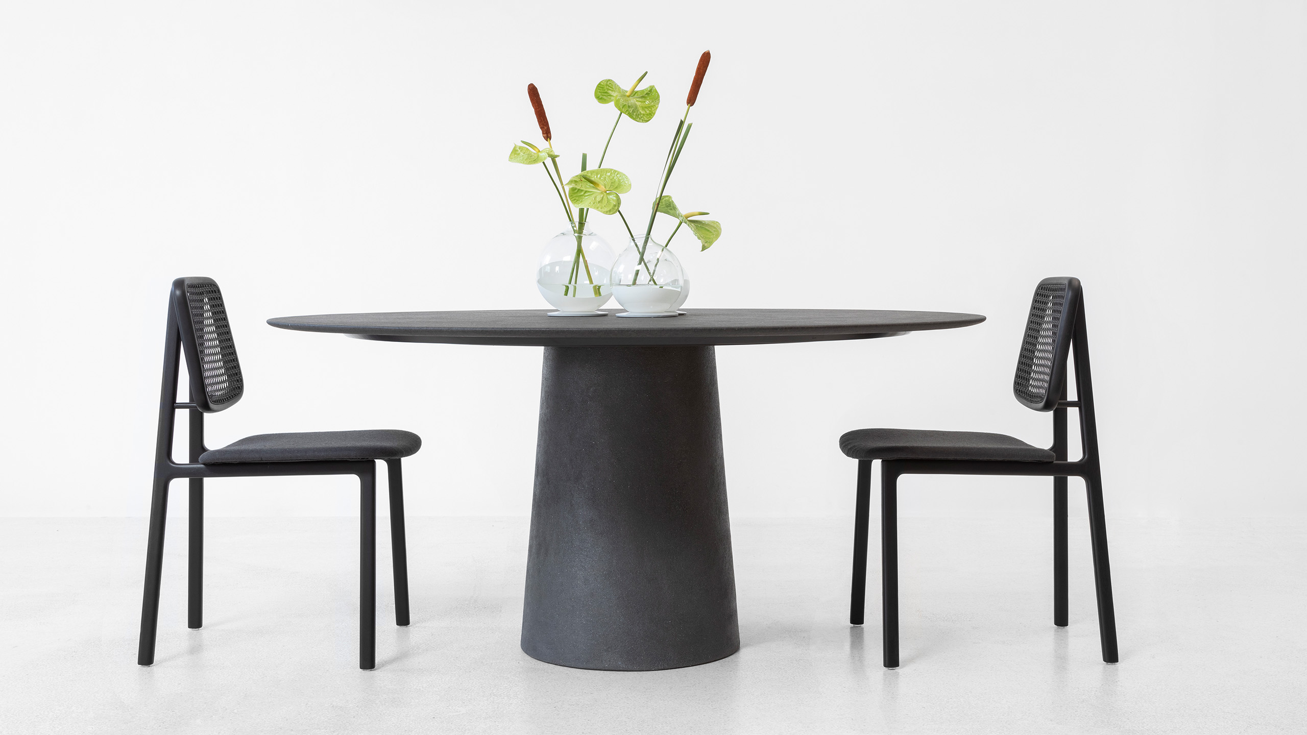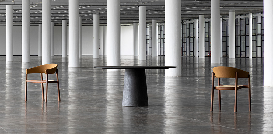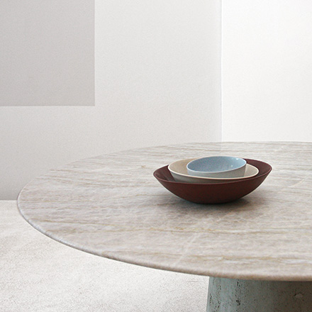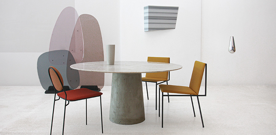 A linha Concreta tem bases de concreto pigmentado e tampos em pedra. O principal ponto a ser ressaltado nesta linha é o seu caráter escultórico que reside na oposição entre o peso da base de concreto e a leveza do tampo que se projeta em balanço. Os jogos de diferentes comprimentos e alturas conferem dinâmica e movimento ao conjunto.