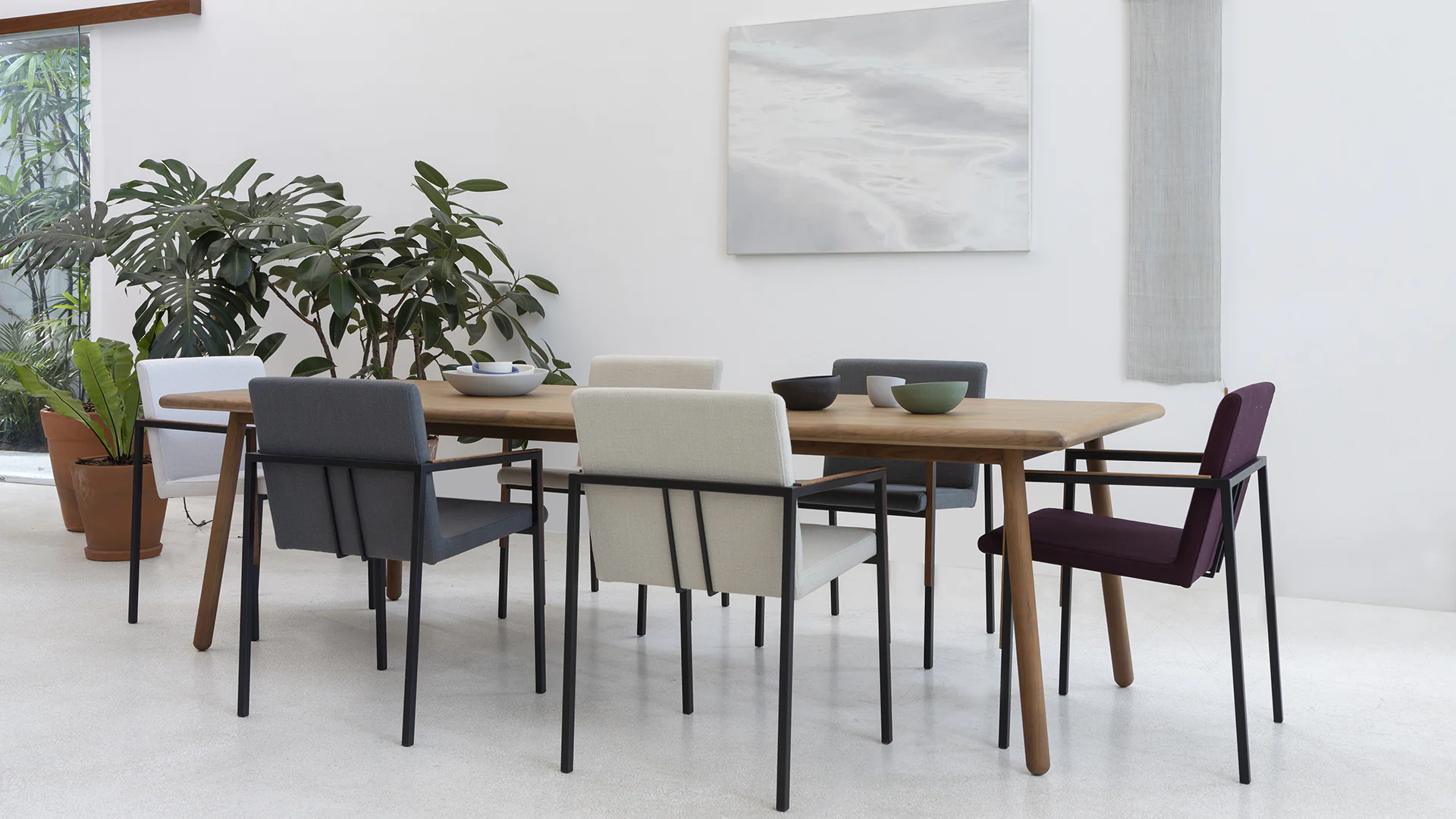 Dando continuidade à linha Filhote, a mesa do mesmo nome também tem na leveza da madeira torneada seu principal elemento. Pés, estrutura e toda borda do tampo são arredondados garantindo o toque delicado e agradável do conjunto.
