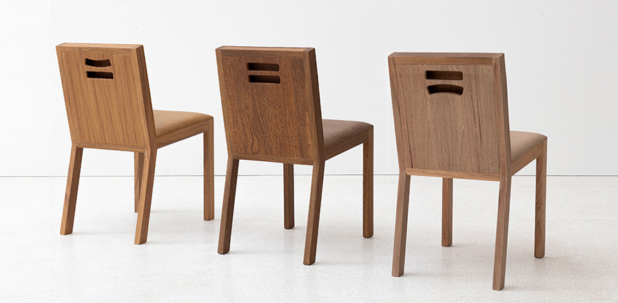 A linha Hashi é formada por duas versões de cadeira – com e sem braço – e poltrona. O traço conciso e preciso, característico de tantas outras peças criadas pela dupla de designers Luciana Martins e Gerson de Oliveira, aqui encontra sua expressão na madeira maciça. Neste desenho singular as linhas de madeira são formadas por perfis ligeiramente cônicos nos pés, e outros ovalados, que formam os braços e as travessas. Estas linhas se encontram e tangenciam delicadamente, deixando à mostra a estrutura que recebe assento e encosto estofados. O conforto destas peças, já sugerido por suas formas puras e orgânicas, se confirma quando nos sentamos. Observando esta linha de cadeiras e poltrona entendemos porque a ela foi dado o nome Hashi, o icônico “palitinho” oriental. Assim como nestes utensílios asiáticos, aqui temos o máximo de função e com o mínimo de recursos formais.