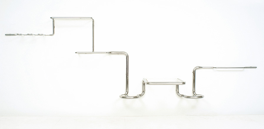 Com esta peça podemos fazer diversas tipologias do mobiliário. A linha pode ser moldada para formar mesas de jantar, bancos, cabides e assim por diante. Por trás de um jogo aparentemente simples, da não interrupção da linha, há um pensamento dominante: o traço contínuo como metáfora para a continuidade da idéia. Traduzimos também para o material as diferentes espessuras da linha marcada pelo lápis no papel quando desenhamos. O grafite transforma-se em aço. É como se a casa se organizasse numa sequência temporal e não mais espacial. A casa estaria em uma linha e deixaríamos o centro vazio, uma idéia tão importante para arquitetura e o pensamento dos japoneses.