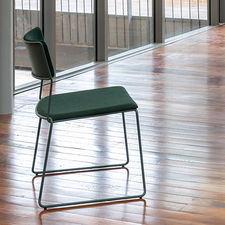 A cadeira Loop faz parte de uma linha de mobiliário desenvolvida para espaços de uso coletivo. Assim, a peça nasce da ambição de fabricar um mobiliário resistente, durável, confortável, de fácil limpeza e manutenção e com uso inteligente da matéria-prima, sem perder de vista um desenho autoral e contemporâneo. O nome – Loop – reforça o desenho e o método construtivo da cadeira, já que faz referência ao perfil metálico que se dobra, faz voltas, passa por detrás do assento, constrói pés, encostos e braços e, em um movimento contínuo, delimita o contorno da peça. A versão toda em metal foi a primeira fabricada. Ela é oferecida com e sem braços, e por receber tratamento em eletrodeposição catódica (base que torna a pintura resistente para uso em área externa) e pintura eletrostática, possui excelente proteção anticorrosiva, o que permite que a cadeira possa ficar exposta à chuva, ao sol e a variação de temperatura, e, dessa forma, possa ser usada em espaços externos