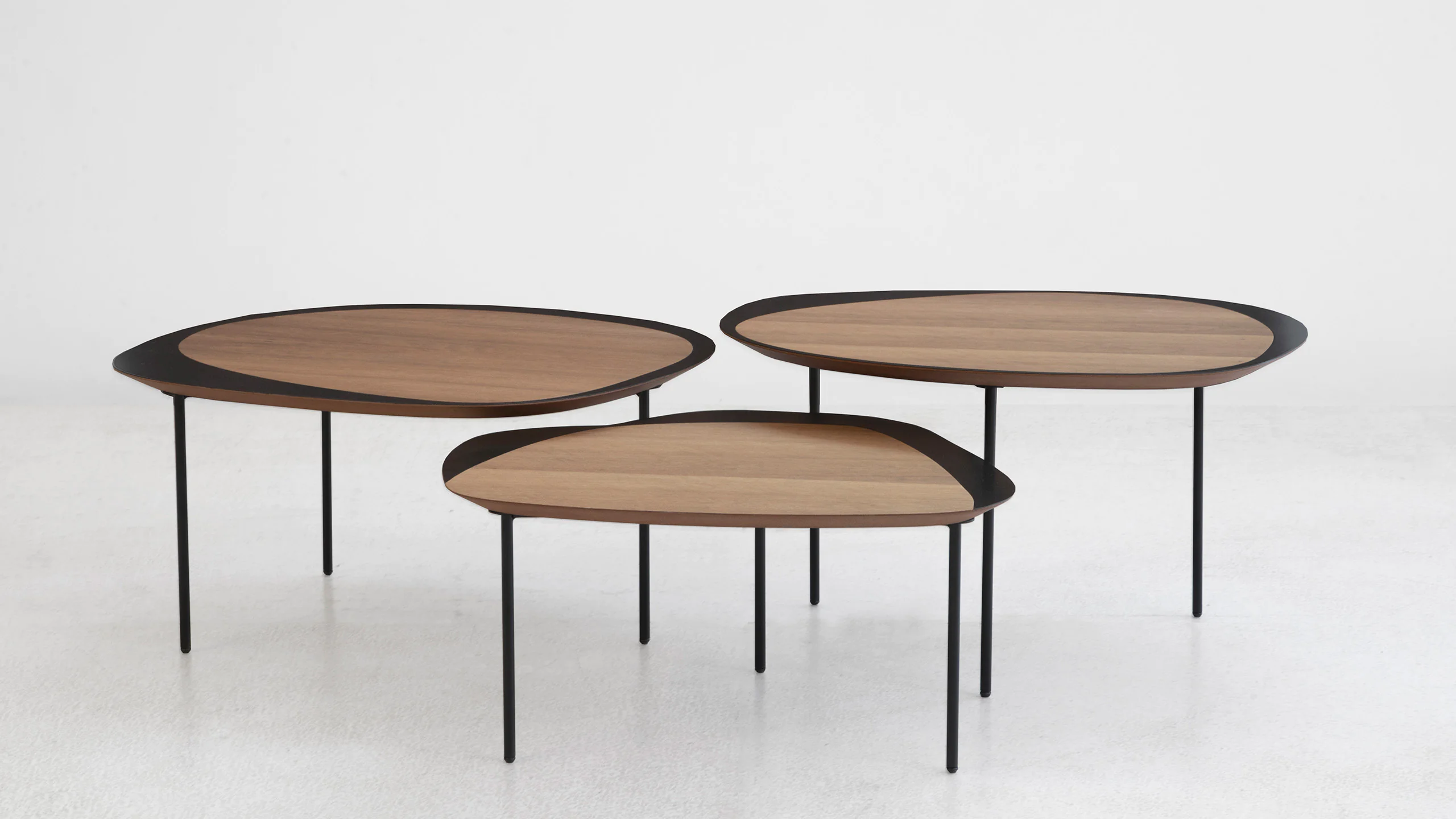 A linha Margem – vencedora do prêmio Casa Vogue Design 2018 na categoria complementos, nasceu da investigação gráfica e pictórica, começou como algo muito solto a partir das formas – cheio e vazio, claro e escuro, contorno e conteúdo – e ganhou corpo a partir da pesquisa da combinação dos materiais. Os tampos são resultado do encontro entre madeira e chapa metálica, usinados industrialmente para exprimir com precisão a imprecisão dos desenhos à mão.