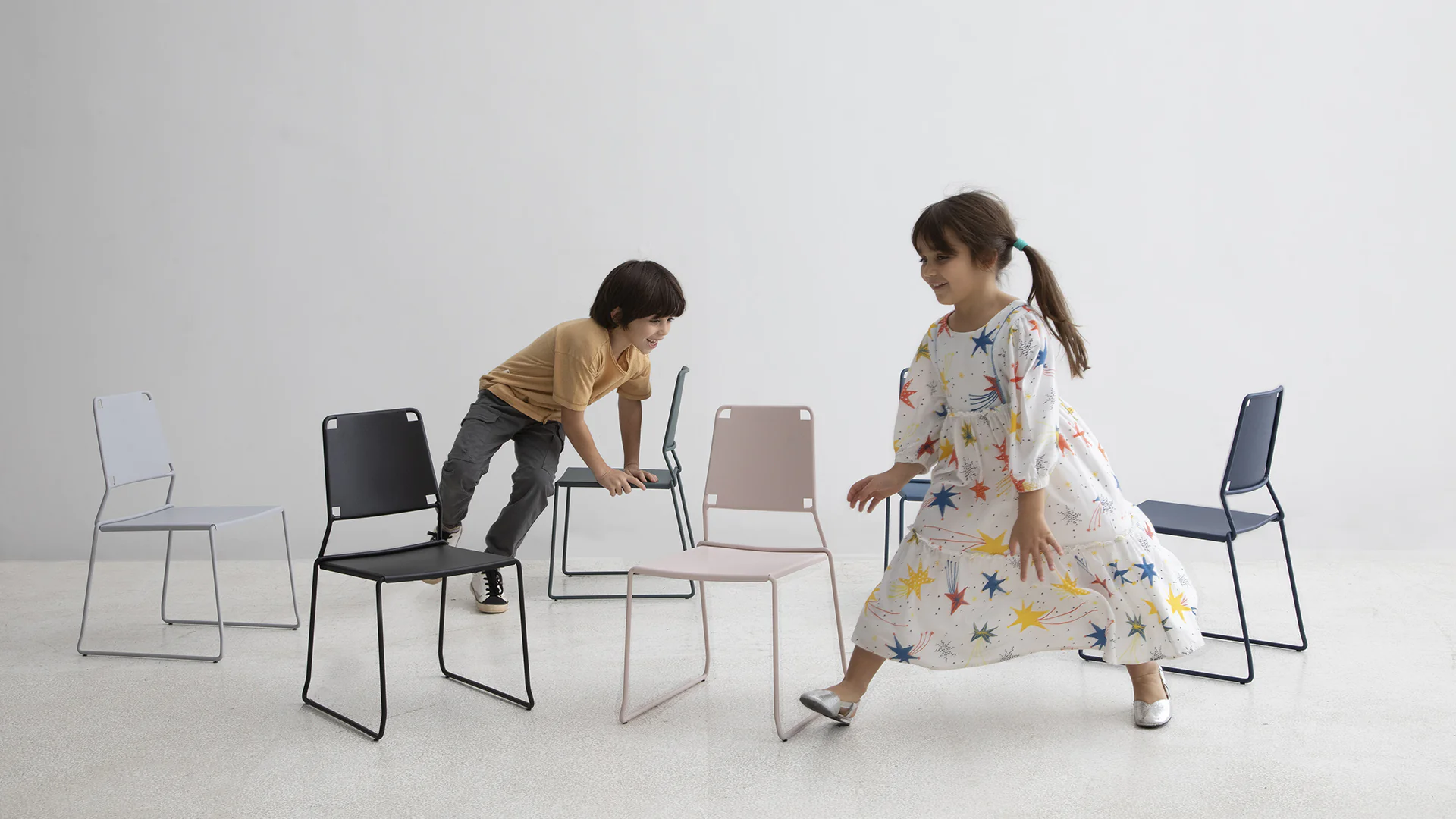 Indicada para crianças de 3 a 6 anos, a cadeira Obi infantil é empilhável e segue os mesmos critérios de conforto da sua versão para adultos.